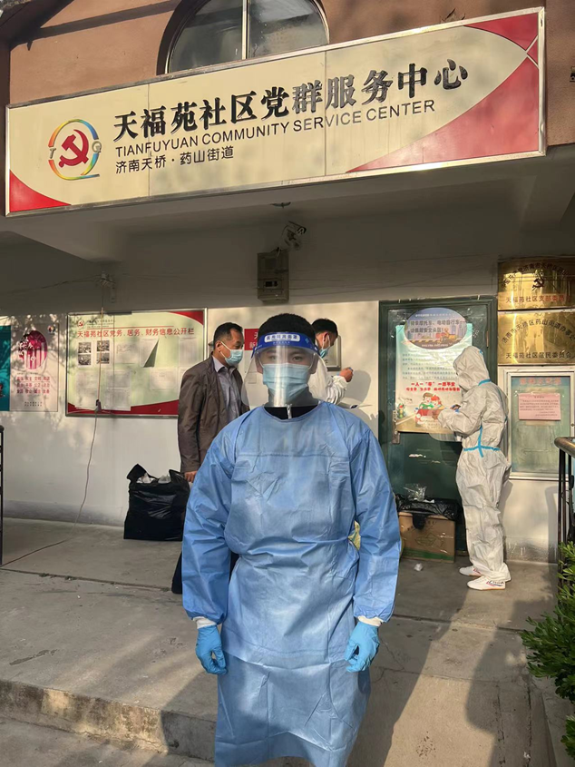 4月27日一早,來自濟(jì)南科技創(chuàng)業(yè)投資集團(tuán)有限公司黃金和張澤陽就趕赴胥家村,站好健康查驗(yàn)點(diǎn)的第一班崗;濟(jì)南經(jīng)發(fā)基金管理有限公司的崔家浩與天橋區(qū)天福苑檢測點(diǎn)人員正做著做好核酸檢測維持秩序工作;濟(jì)南產(chǎn)發(fā)資產(chǎn)管理有限公司的任政分配到槐蔭區(qū)興福街道濟(jì)西社區(qū),與其他參與防疫的人員一起接受崗前培訓(xùn)后,迅速上崗;濟(jì)南經(jīng)發(fā)中小企業(yè)服務(wù)有限公司的謝炳怡與小鴨集團(tuán)的劉玉峰、金德利集團(tuán)的劉相濤一起前往高新區(qū)臨港街道,接受工作任務(wù)。隨后,趙梓淇、董振興、高志翔、張樂等幾名同事也投身于防疫的志愿者隊(duì)伍中。