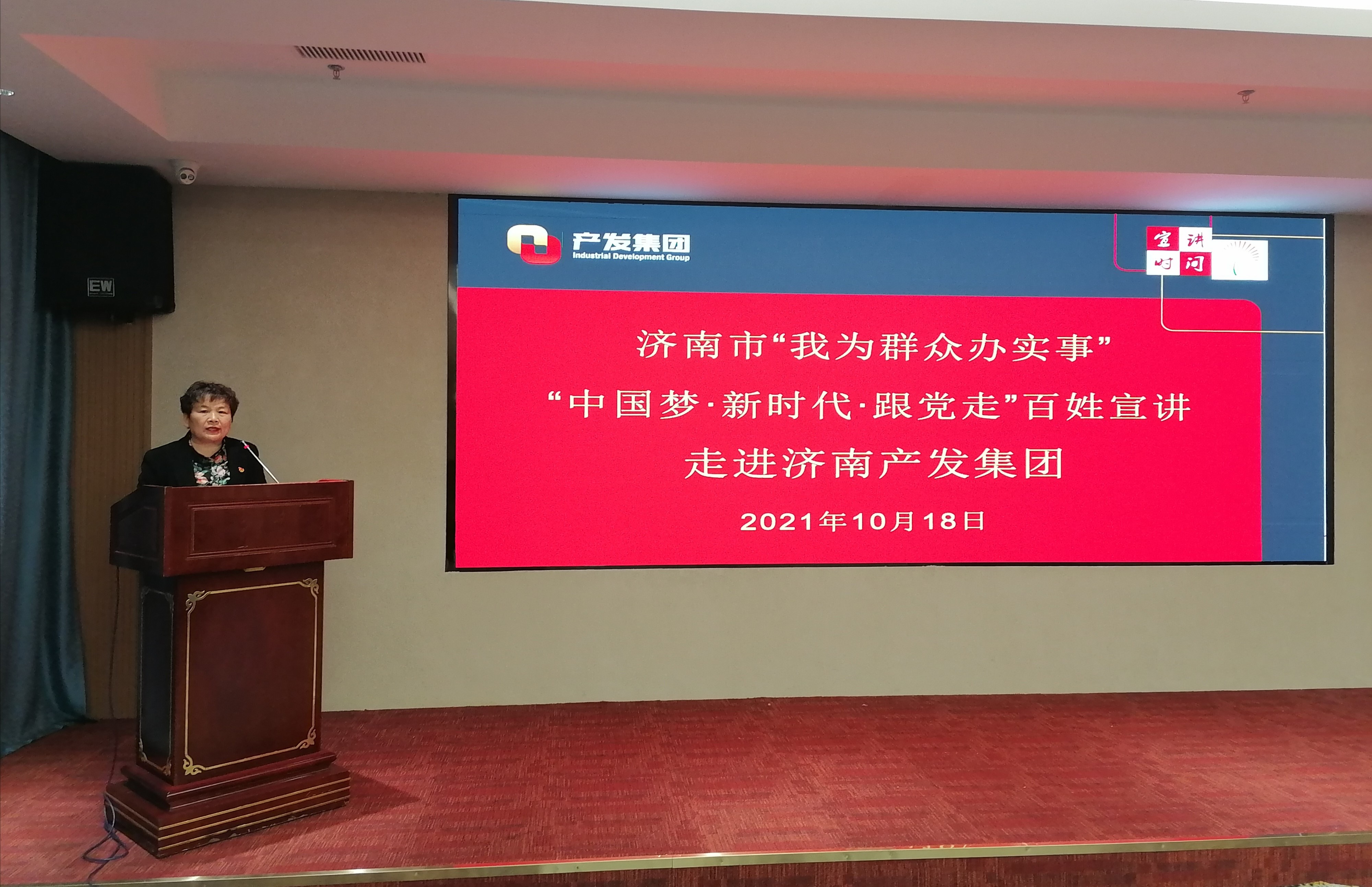 為深入貫徹落實(shí)習(xí)近平總書(shū)記“七一”重要講話精神,扎實(shí)推進(jìn)黨史學(xué)習(xí)教育“我為群眾辦實(shí)事”活動(dòng),10月18日下午,濟(jì)南市“我為群眾辦實(shí)事”“中國(guó)夢(mèng)·新時(shí)代·跟黨走”百姓宣講活動(dòng)走進(jìn)濟(jì)南產(chǎn)發(fā)集團(tuán)。在市委講師團(tuán)副處級(jí)干部呂桂紅的率領(lǐng)下,“我為群眾辦實(shí)事”百姓宣講團(tuán)的6位宣講員用他們的親歷、親聞、親為,為產(chǎn)發(fā)集團(tuán)50余名參會(huì)干部職工講述“聽(tīng)黨話、跟黨走、率先垂范、主動(dòng)擔(dān)當(dāng)、無(wú)私奉獻(xiàn)”的動(dòng)人故事。